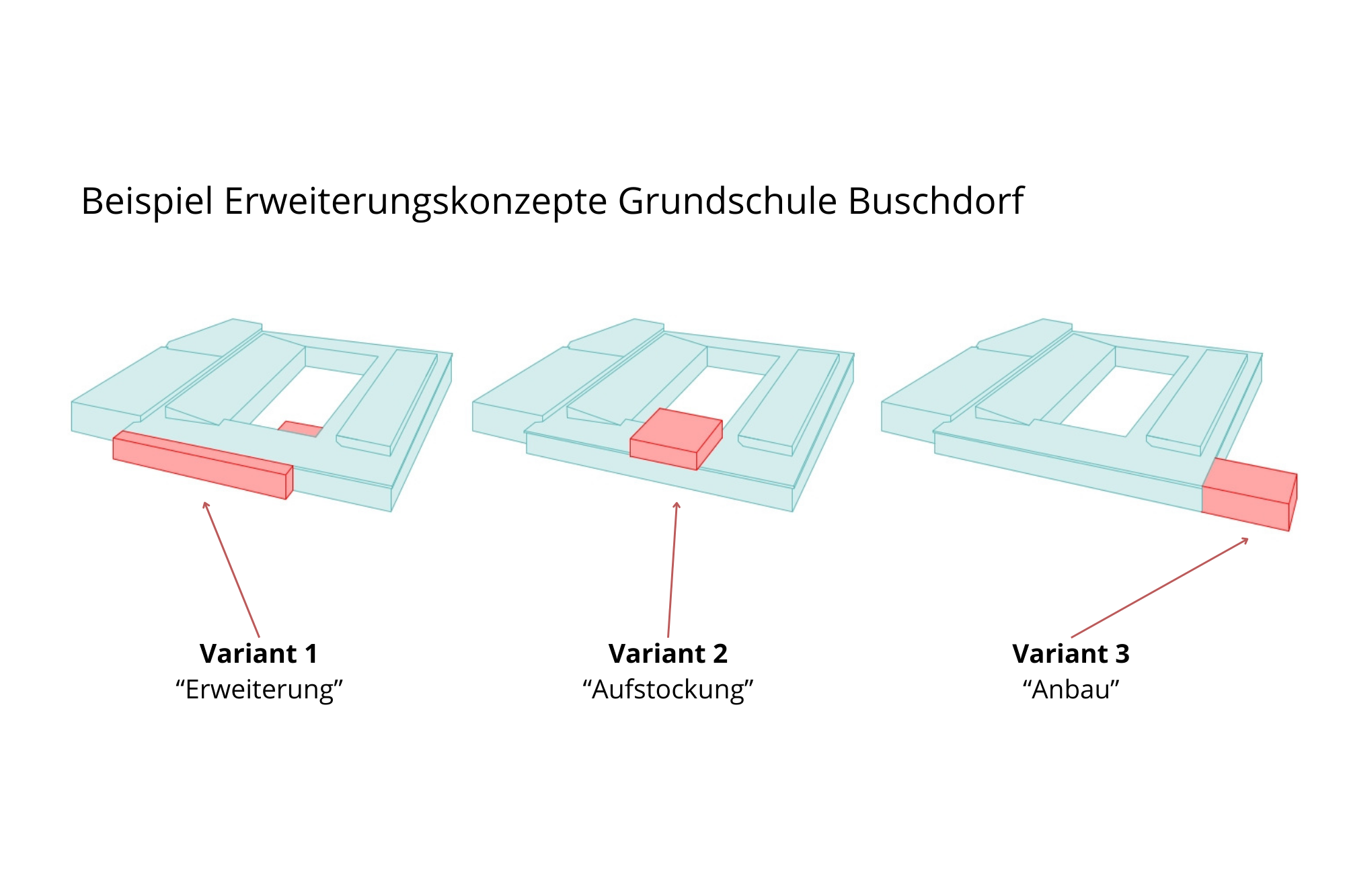 Die bevorzugten Entwürfe ermöglichen bedarfsgerechte Erweiterungen unter Berücksichtigung der jeweiligen Rahmenbedingungen und bilden eine solide Grundlage für die weiteren Planungen.